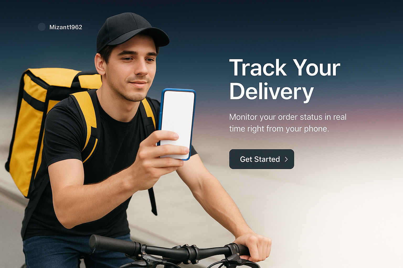 Courier on Bicycle Using Smartphone for Delivery Tracking