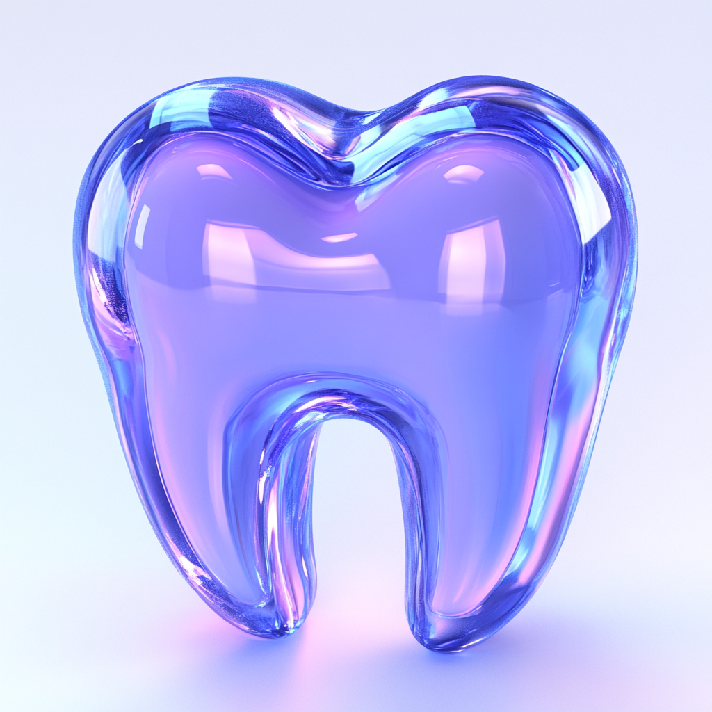 A modern 3D representation of a tooth with a glossy, translucent finish. This graphic is ideal for dental marketing, educational materials, or health-related content.