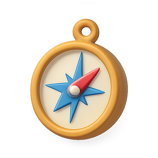 A vibrant 3D compass icon featuring a blue star-shaped needle and a round golden casing. Ideal for navigation-related applications and design projects.