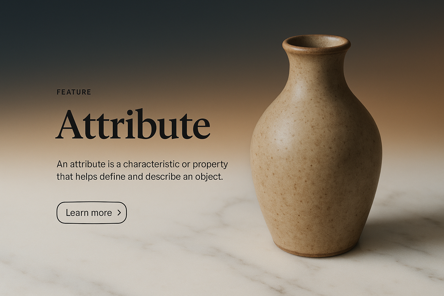 A stylish web page design featuring a realistic vase illustration, with a gradient background and clear text elements, highlighting the concept of attributes.