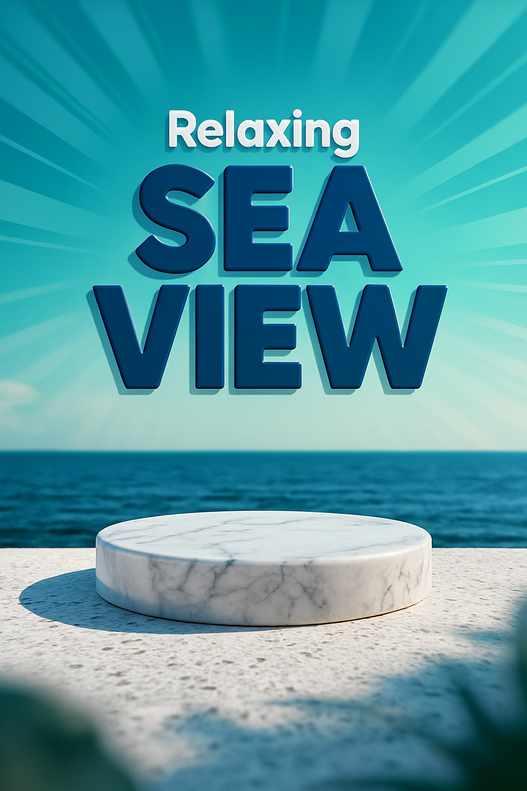 A captivating image featuring a white marble podium set against a vibrant sea view. The dynamic angle and bold title add depth and energy to the scene.