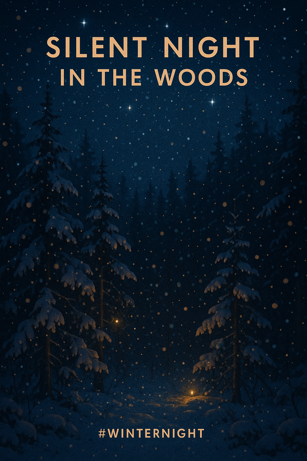 Serene Winter Night Landscape with Stars and Snowy Trees