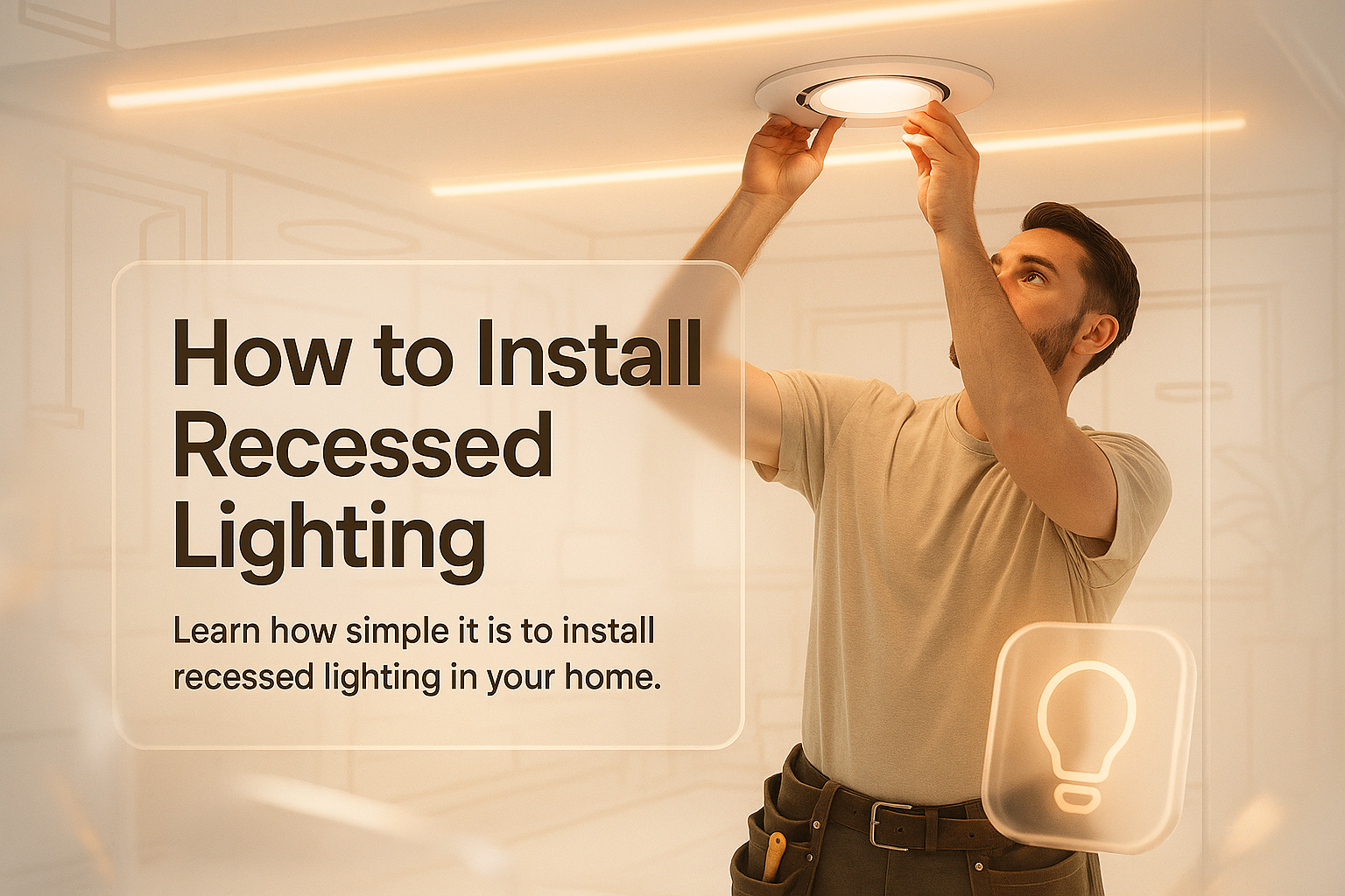 /Collection: /by davooda/Type: PNG/Informative graphic showcasing a person installing recessed lighting, designed for DIY enthusiasts. The clean layout and modern visuals emphasize simplicity and accessibility.