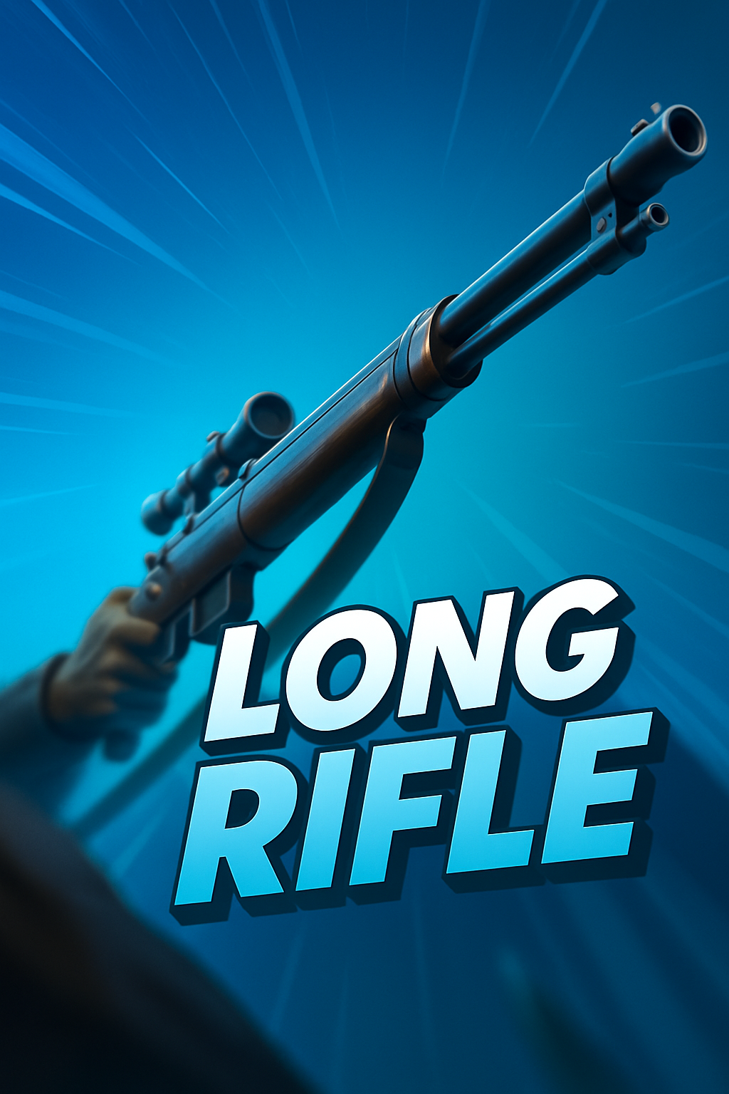 A striking image showcasing a long rifle from a dynamic angle, emphasizing motion with rays emanating from the center. The background features a smooth gradient, enhancing the focus on the rifle.