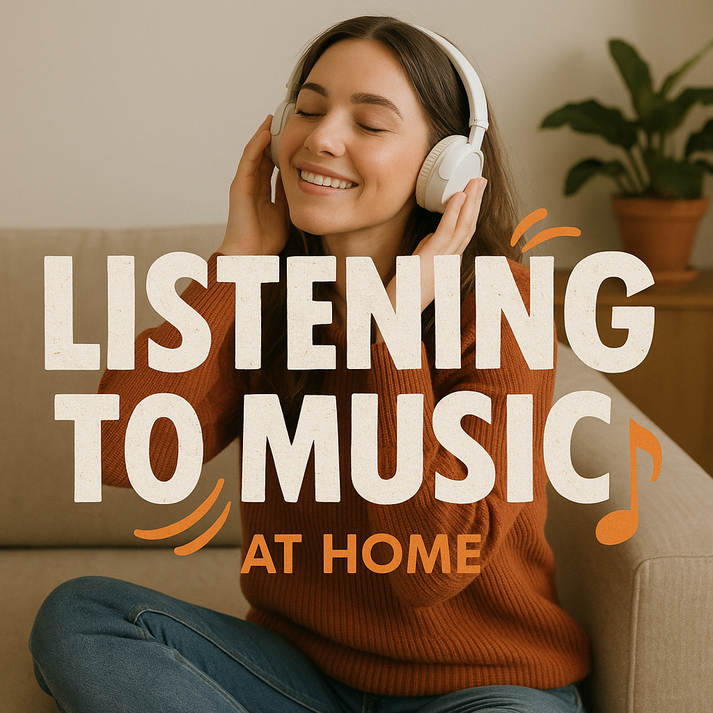 /Collection: /by davooda/Type: PNG/A warm and inviting social media post featuring a woman enjoying music at home. The design emphasizes relaxation and comfort, making it perfect for lifestyle content.