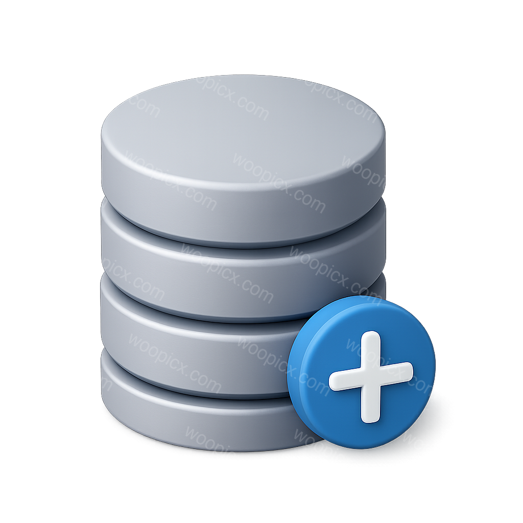Stylized 3D Database Icon with Plus Sign