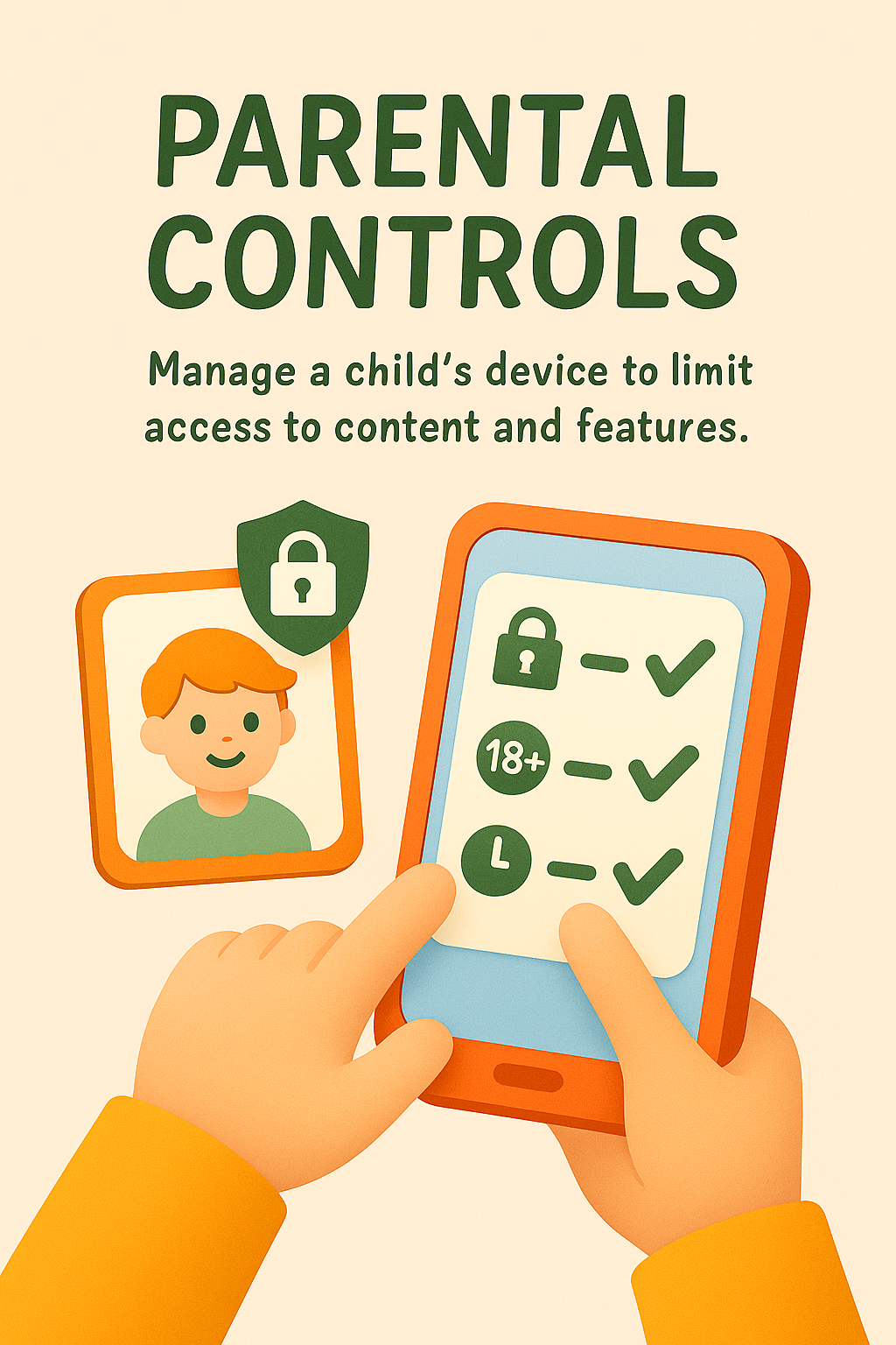 /Collection: /by davooda/Type: PNG/Colorful illustration depicting parental control settings on a smartphone, designed for parents to manage children's device usage. Ideal for educational or informational content.