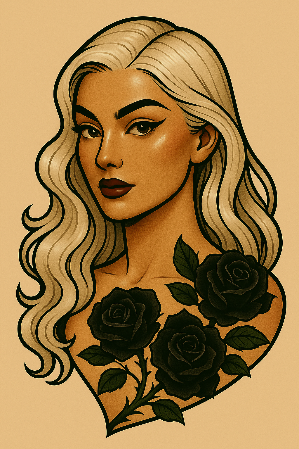 Elegant Tattoo Style Portrait of a Woman with Roses