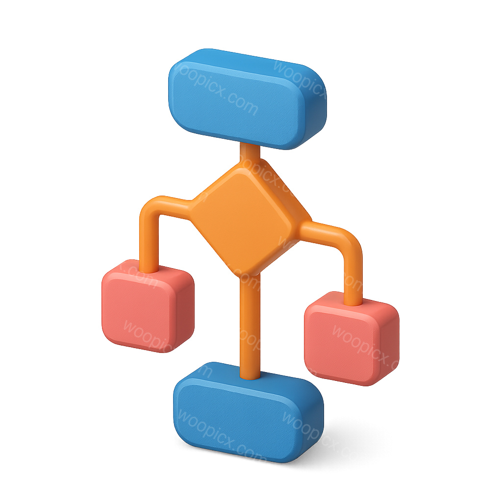 /Premium/Collection: /by davooda/Type: PNG/A visually striking 3D flowchart diagram featuring colorful geometric shapes. The design includes decision points and connections, all rendered in a three-quarter isometric perspective with a soft glow effect.