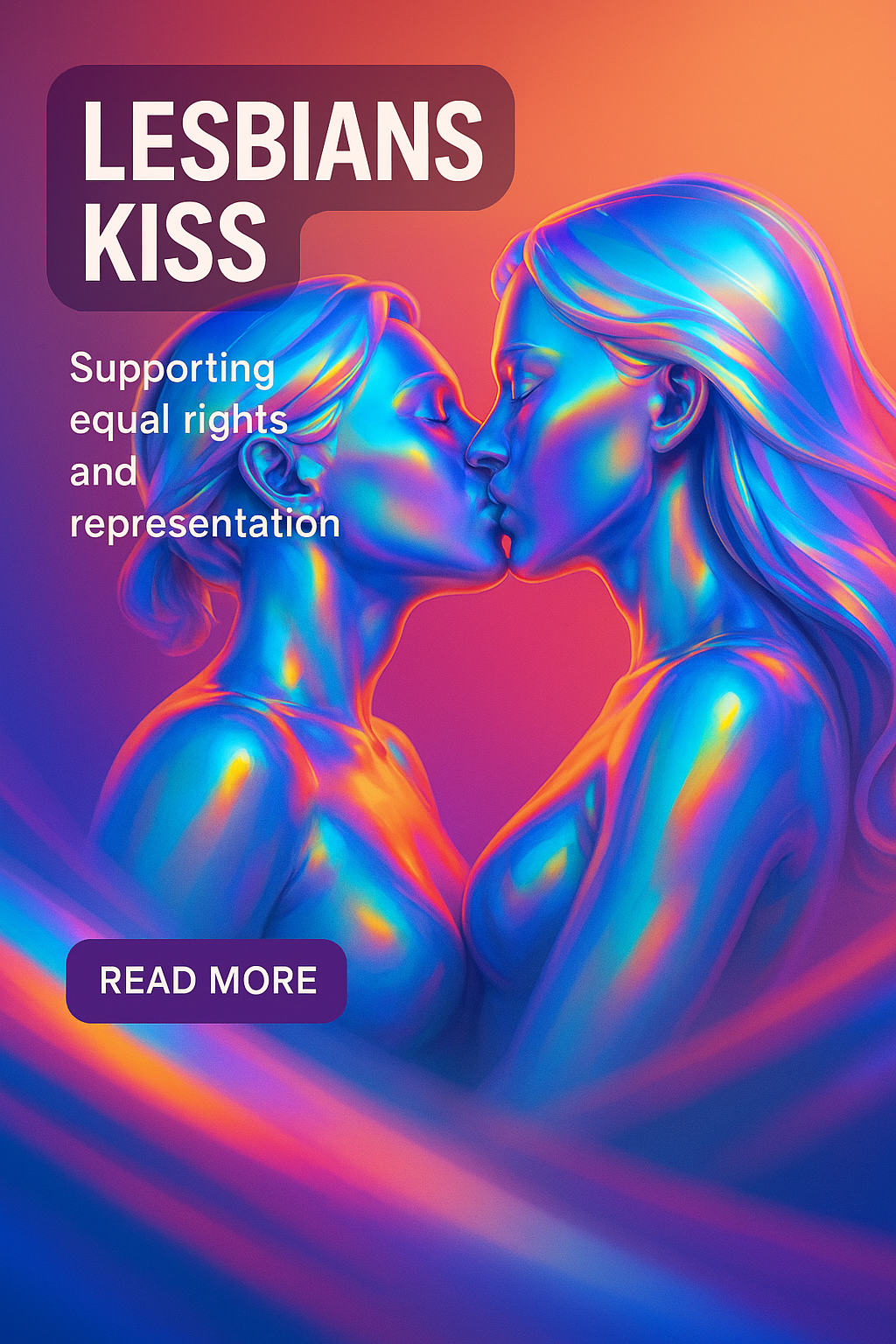 /Collection: /by davooda/Type: PNG/A striking digital illustration featuring two women kissing, rendered in vibrant colors. This artwork emphasizes themes of love and equality, suitable for LGBTQ+ advocacy and pride events.