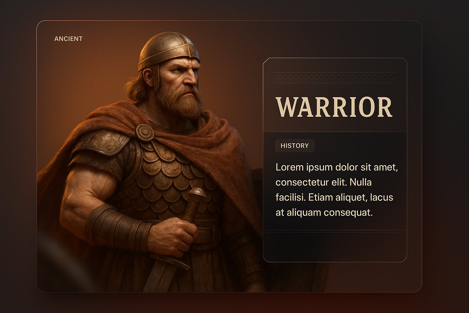 /Collection: /by davooda/Type: PNG/A stunning 3D illustration of a warrior, featuring a dark panel with text integrated into the image. The design includes a gradient background and layered elements for depth.