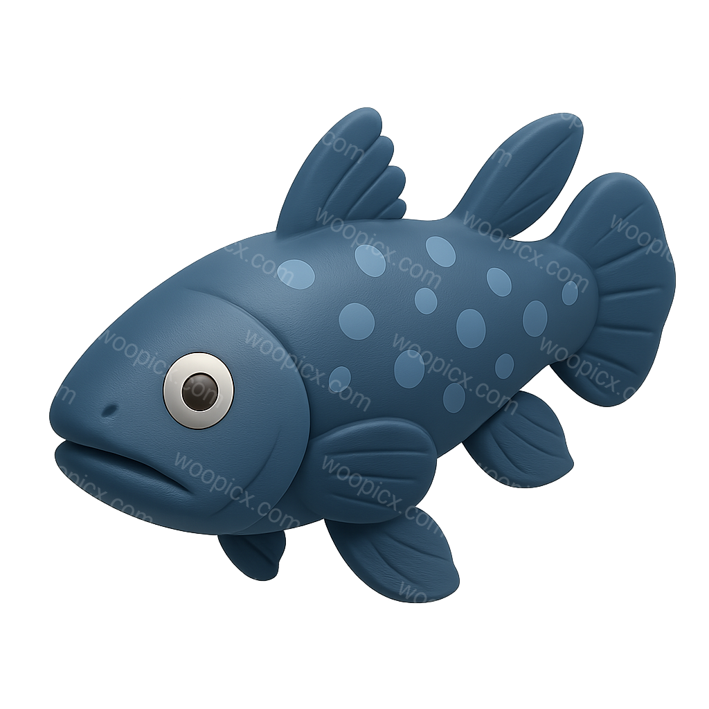 /Premium/Collection: /by davooda/Type: PNG/A stylized 3D icon of a coelacanth, depicted in a three-quarter view with a smooth texture and isometric design. The fish features a blue body with polka dots and a subtle volumetric feel against a dark background.