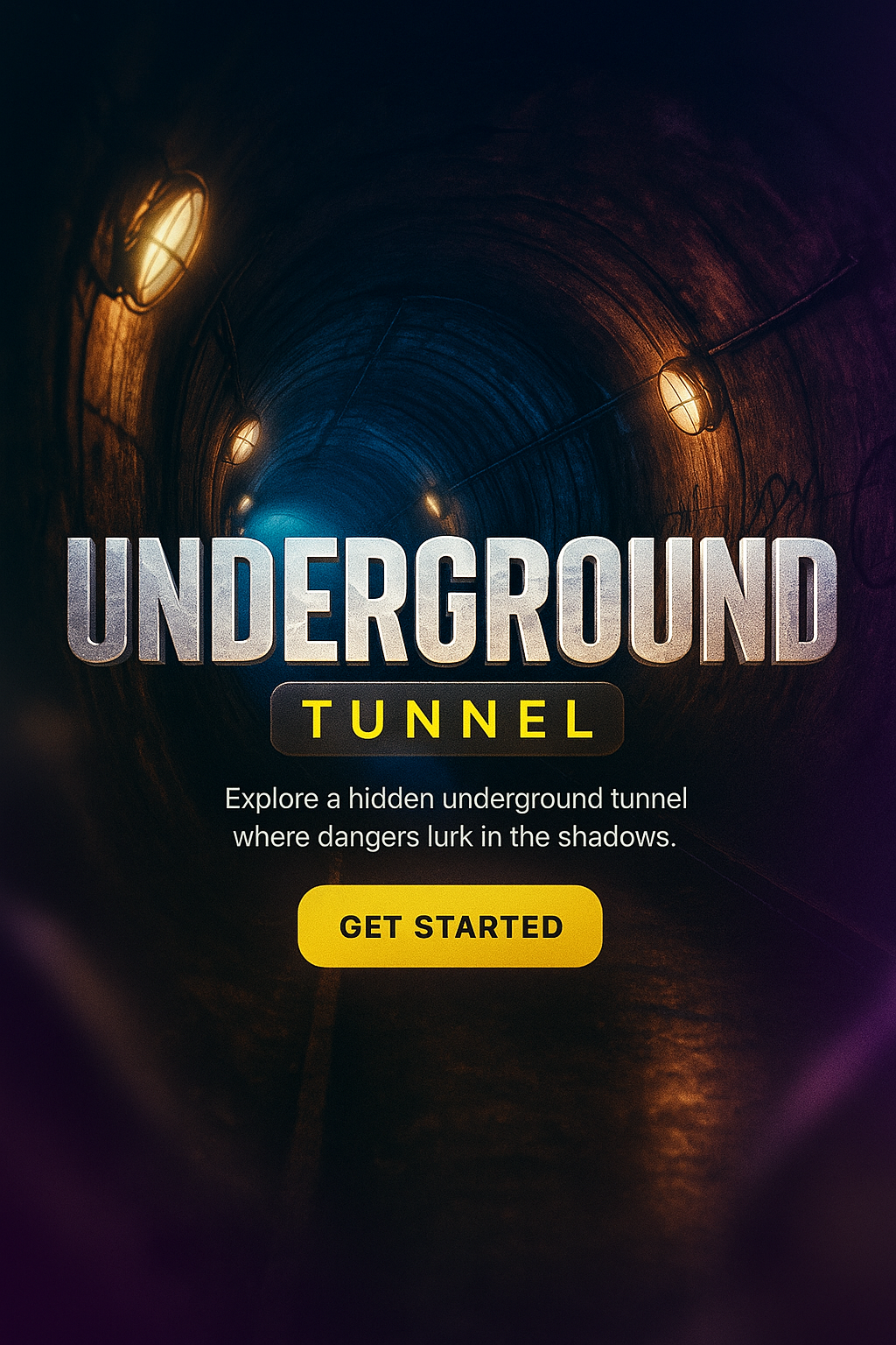 /Collection: /by davooda/Type: PNG/A visually striking underground tunnel scene featuring backlit lighting and dynamic angles. The foreground includes engaging text elements inviting exploration.