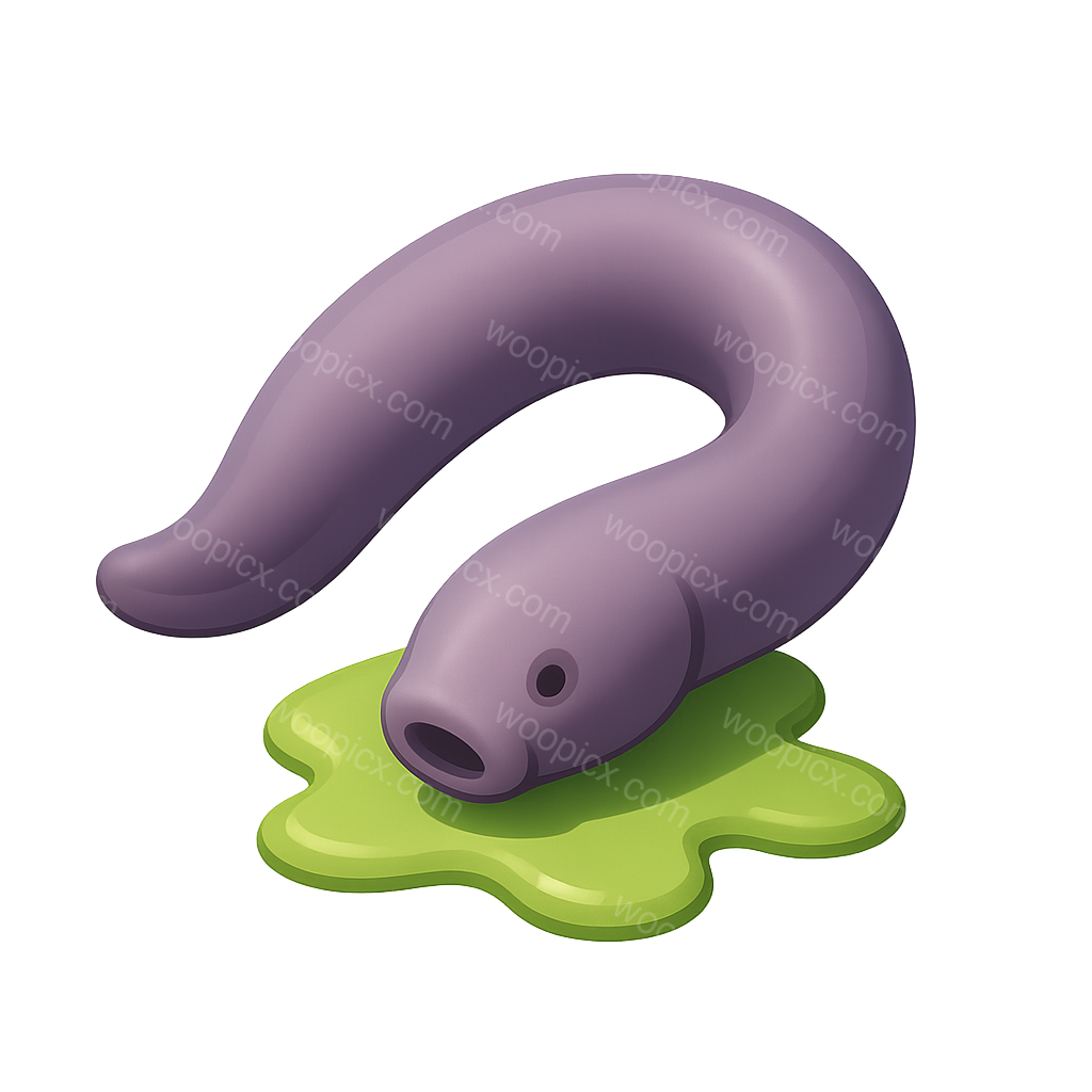 /Premium/Collection: /by davooda/Type: PNG/A 3D icon representing a hagfish producing slime, featuring a purple hagfish with a glossy finish and a green slime puddle, set against a dark gradient background.