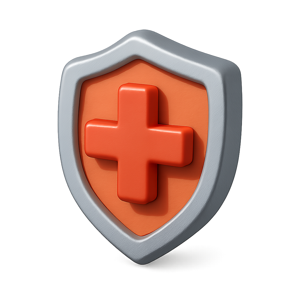 /Collection: /by davooda/Type: PNG/A three-dimensional badge featuring a prominent orange cross on a shield-like background. The design showcases a glossy finish and is presented in a three-quarter view with a transparent background, enhancing its isometric appearance.