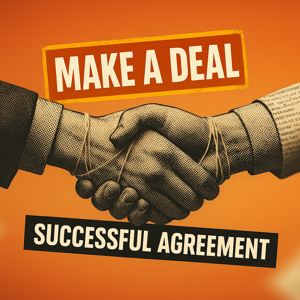 /Collection: /by davooda/Type: PNG/Vibrant promotional graphic illustrating a handshake, symbolizing a successful agreement. Ideal for business presentations and marketing materials targeting professionals.
