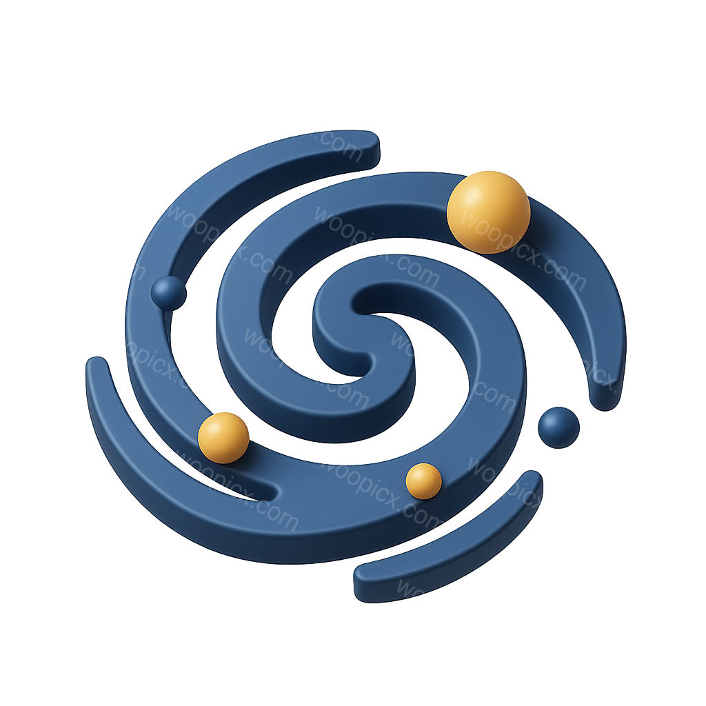 /Premium/Collection: /by davooda/Type: PNG/A 3D representation of a spiral galaxy, featuring smooth, curved lines in blue and yellow spherical accents. The icon has a transparent background and is presented in a three-quarter isometric view.