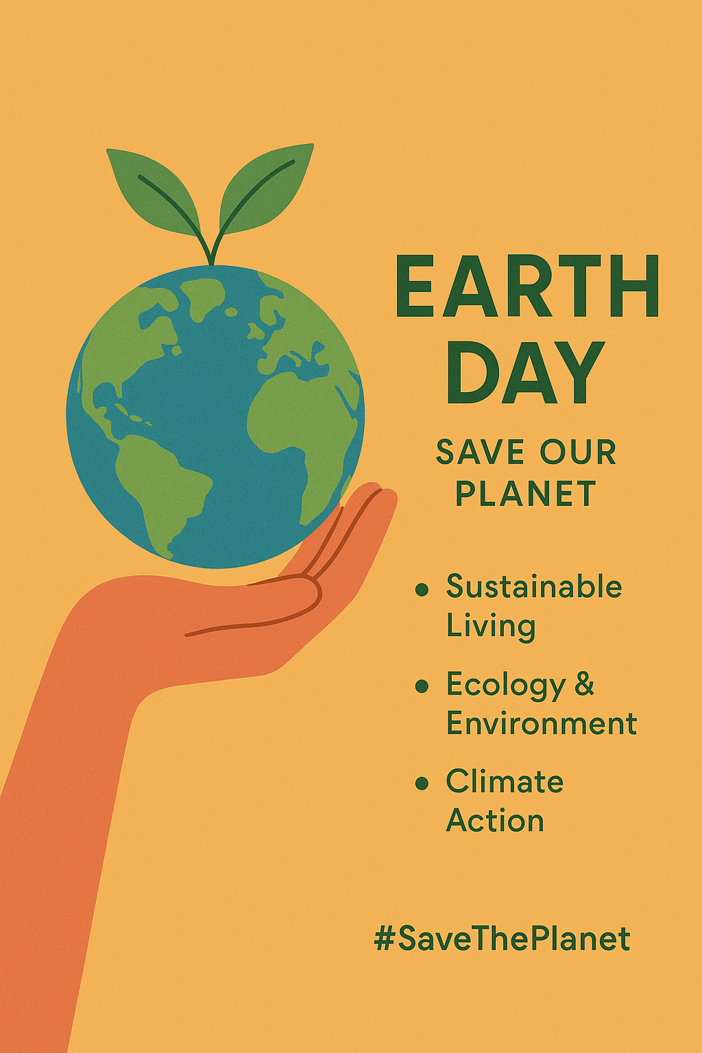 Earth Day Awareness Graphic Featuring Planet and Hand Illustration