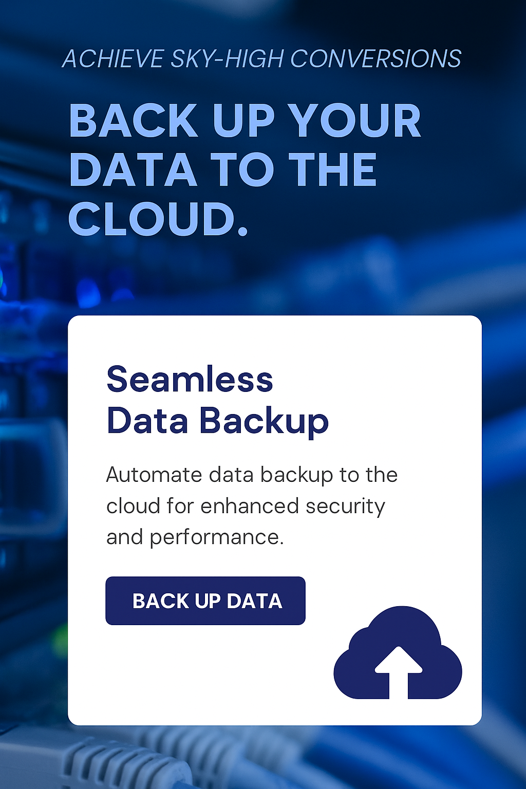 A visually appealing promotional graphic highlighting cloud data backup solutions. It features modern design elements suitable for tech marketing.