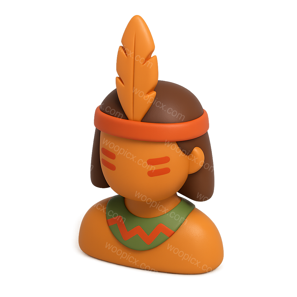 /Premium/Collection: /by davooda/Type: PNG/A vibrant, stylized 3D representation of a tribal figure, featuring a feather headdress, facial markings, and a colorful necklace. The design is isometric with a transparent background.
