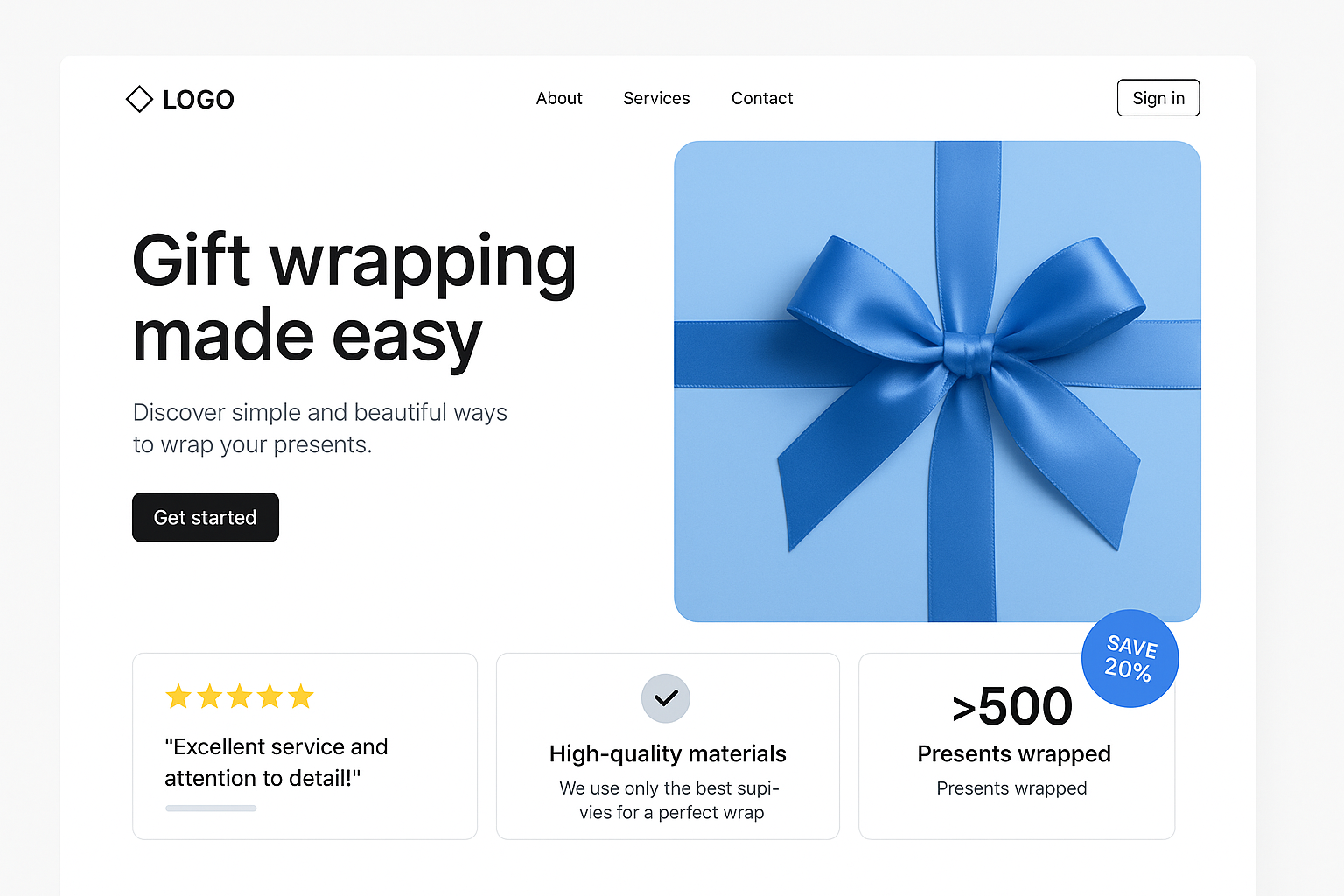Modern Landing Page Design Featuring Gift Wrapping Service