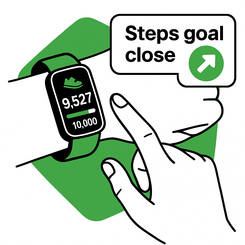 Illustration of a fitness tracker on a wrist displaying step progress, designed for health and wellness applications or promotional content.