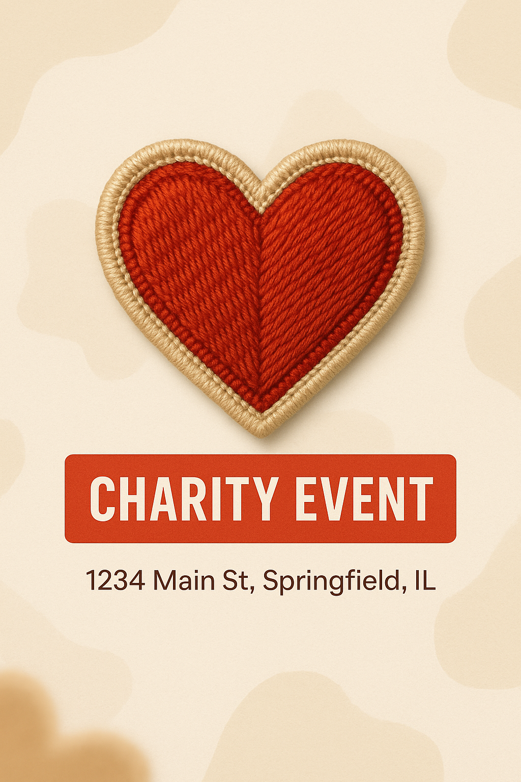 Charity Event Promotional Graphic Featuring Heart Patch Design