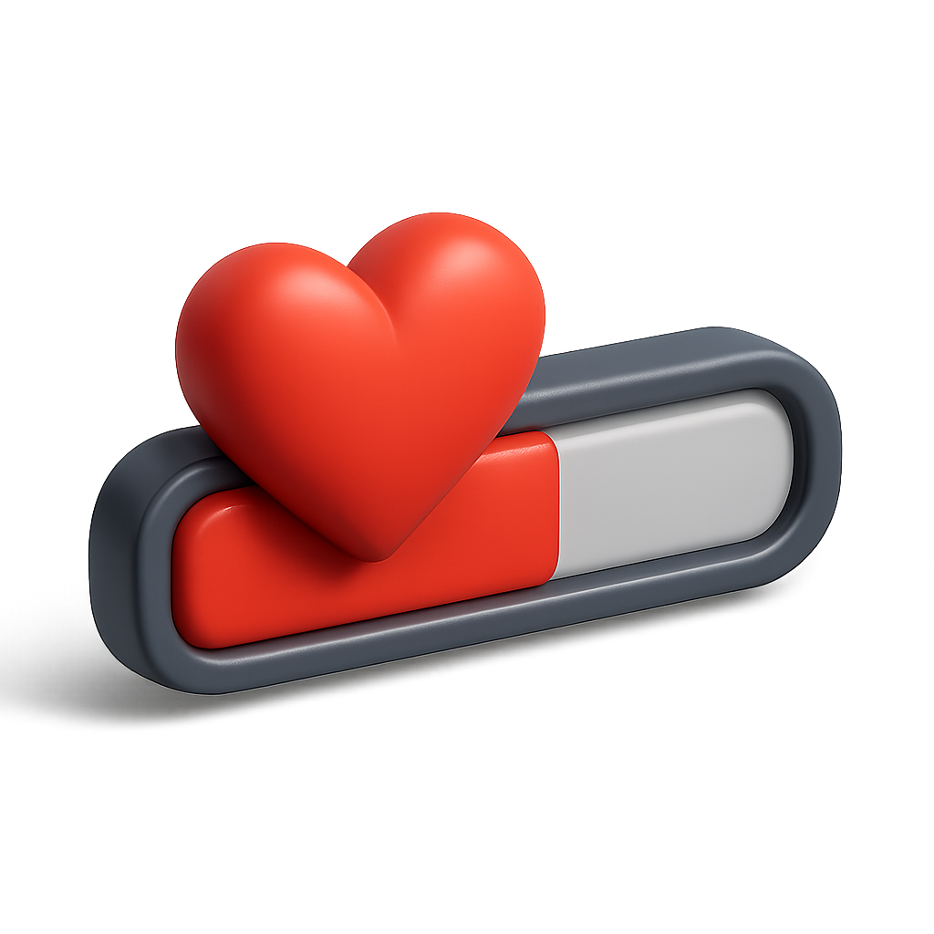 A stylized heart icon positioned over a progress bar, depicting emotional or health status. The design features vibrant colors with a modern touch, suitable for various digital applications.