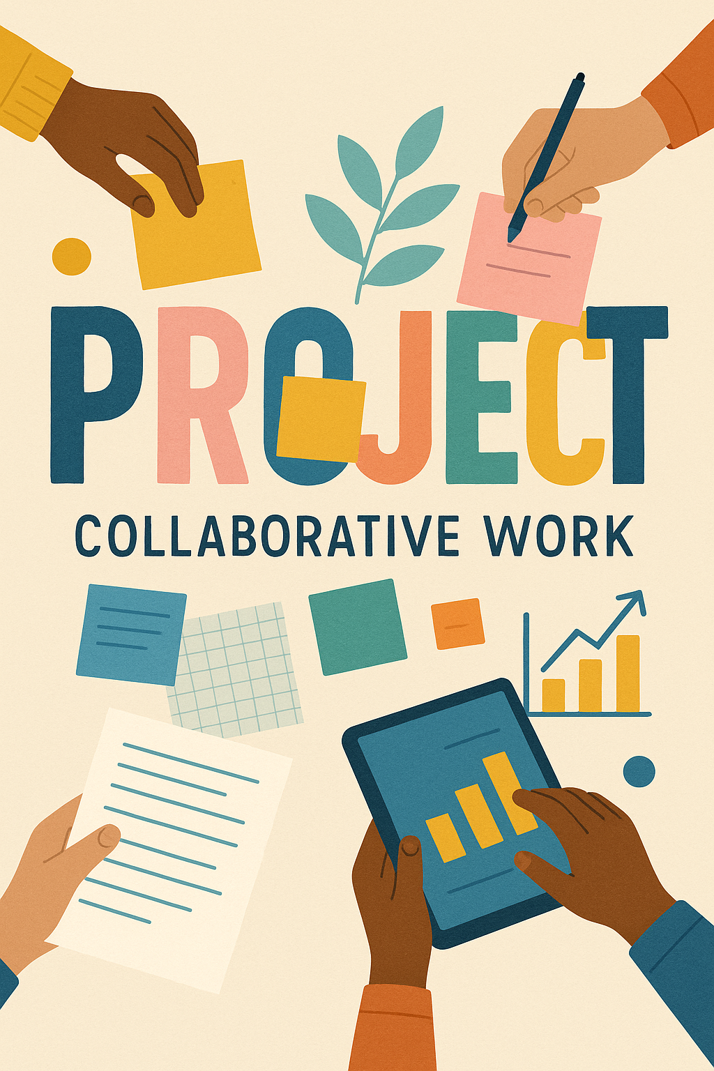 Colorful Graphic Depicting Collaborative Work on a Project