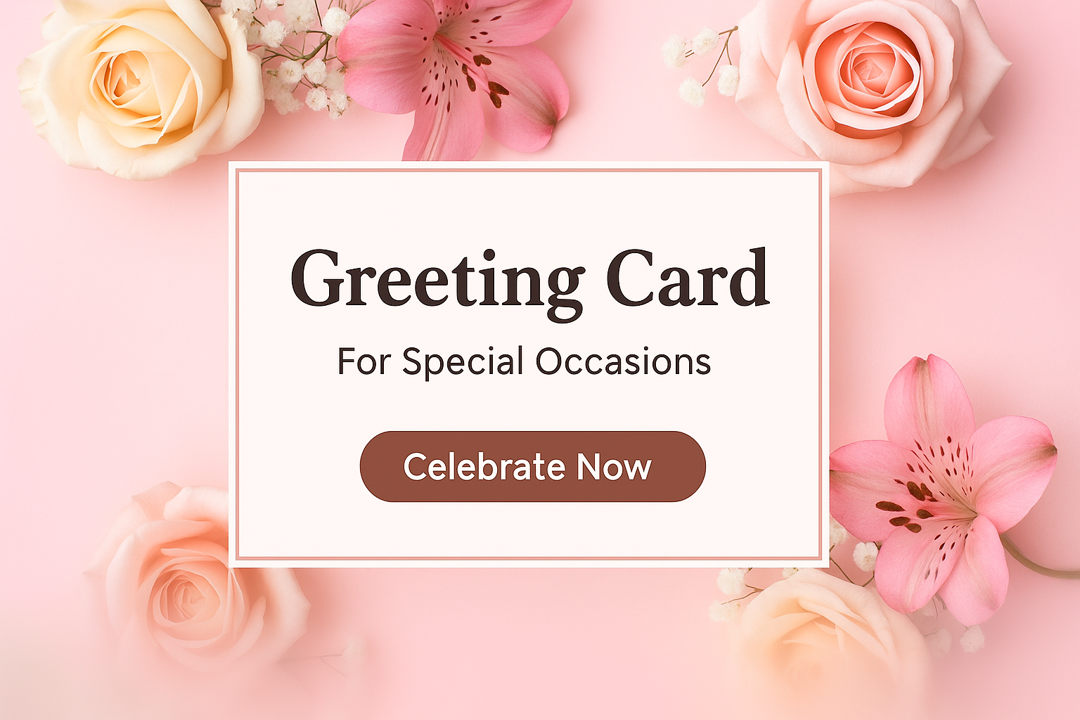 /Collection: /by davooda/Type: PNG/A beautifully designed floral greeting card featuring soft pink roses and lilies on a light pink background. Perfect for weddings, Mother's Day, or special occasions.