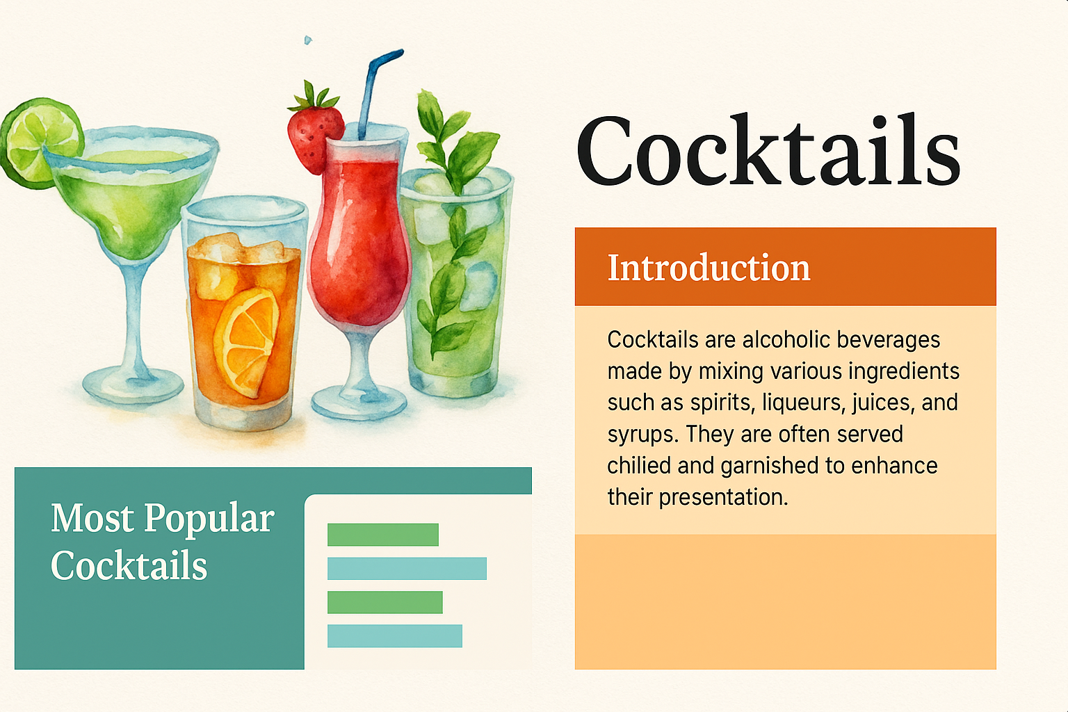 Colorful Illustration of Cocktails with Trend Analysis
