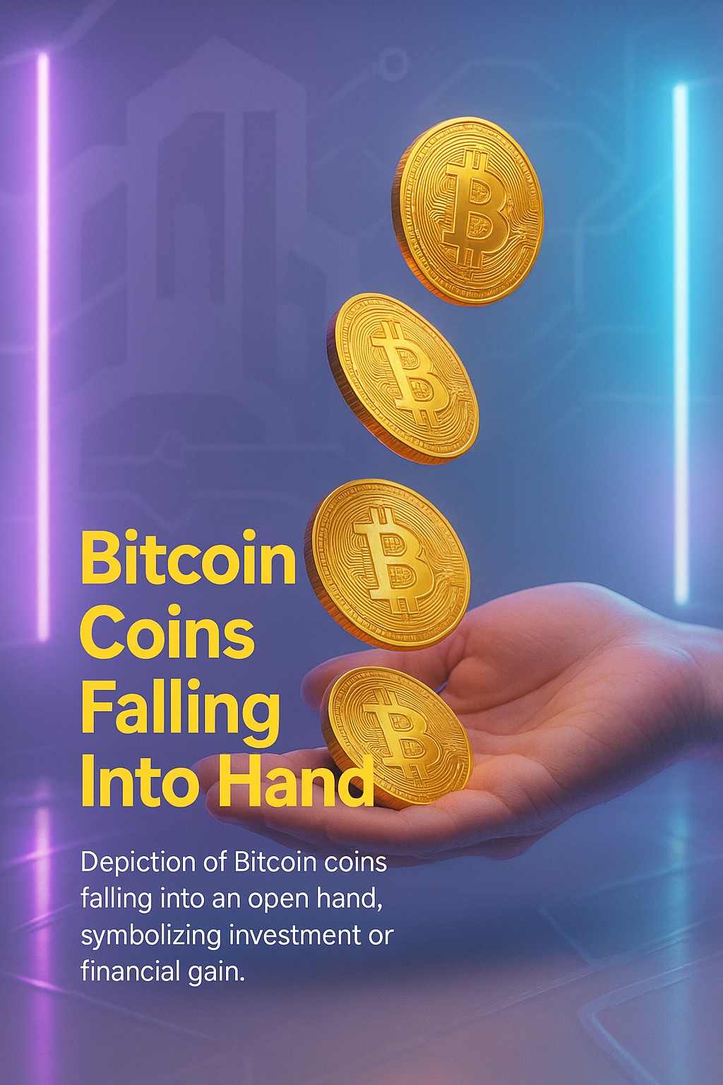 Conceptual Illustration of Bitcoin Coins Falling into an Open Hand