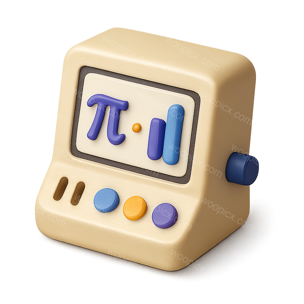 /Premium/Collection: /by davooda/Type: PNG/A creatively designed 3D icon of a probabilistic computer featuring a playful color scheme. It showcases a monitor with mathematical symbols and buttons, presented in a three-quarter isometric view.