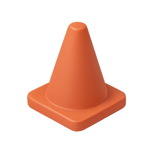 A minimalist representation of an orange traffic cone, featuring a conical shape with a square base. This image is suitable for safety-related themes, construction, or traffic management.