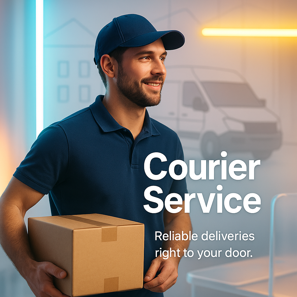 Courier Service Promotional Image Featuring Delivery Personnel