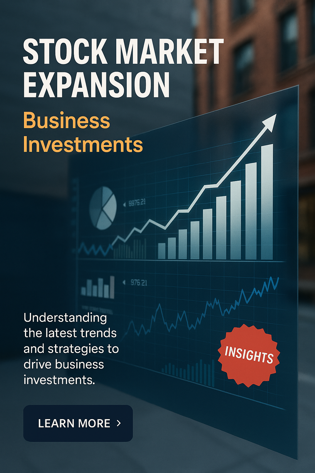/Collection: /by davooda/Type: PNG/A visually engaging composition showcasing stock market expansion, featuring digital graphs and indicators on a blurred dark blue background, with a focus on business investments.