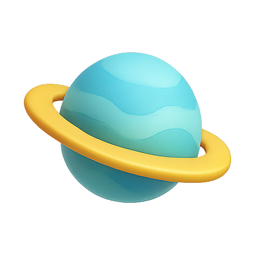 A modern and playful 3D icon of a planet with a ring, featuring bright blue and yellow colors. Ideal for educational materials or children's content.