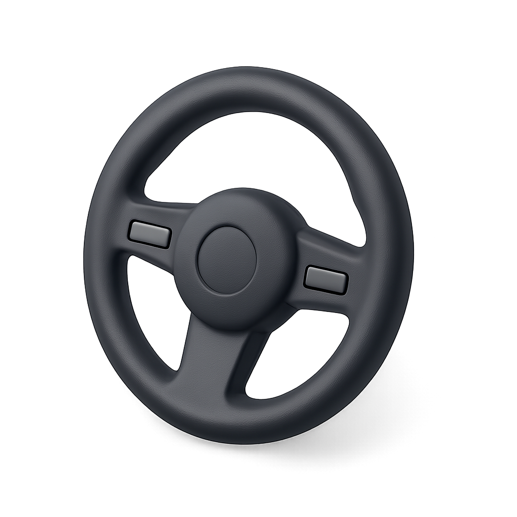 Stylish 3D Steering Wheel Icon on Transparent Background