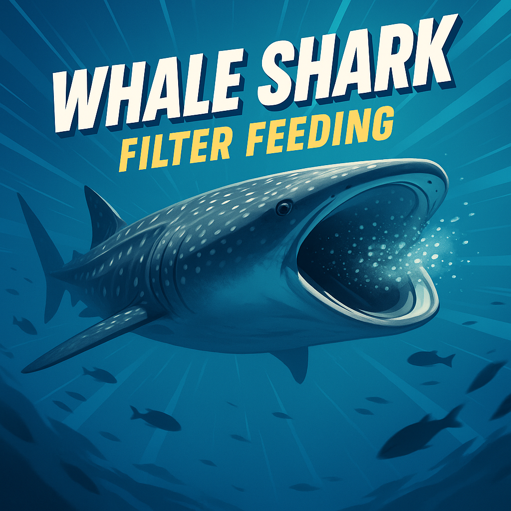 /Collection: /by davooda/Type: PNG/This is a vibrant illustration depicting a whale shark filter feeding underwater. The design features a dynamic color palette and stylized elements, ideal for educational content or marine biology themes.