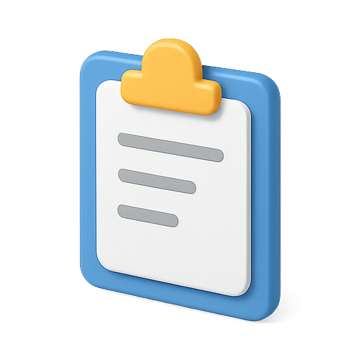 A stylized 3D clipboard icon featuring a checklist design. This graphic is suitable for applications related to task management, note-taking, or organizational tools.