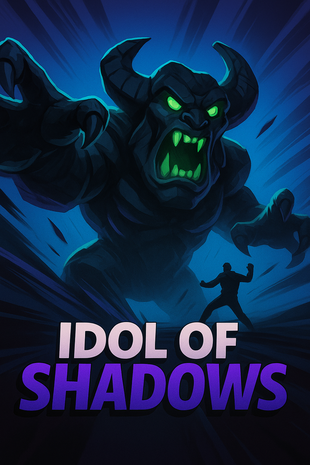 /Collection: /by davooda/Type: PNG/An intense illustration featuring a shadowy figure reaching out with glowing eyes, contrasted against a gradient background. The title 'Idol of Shadows' prominently displayed in bold, dynamic text adds to the dramatic effect.