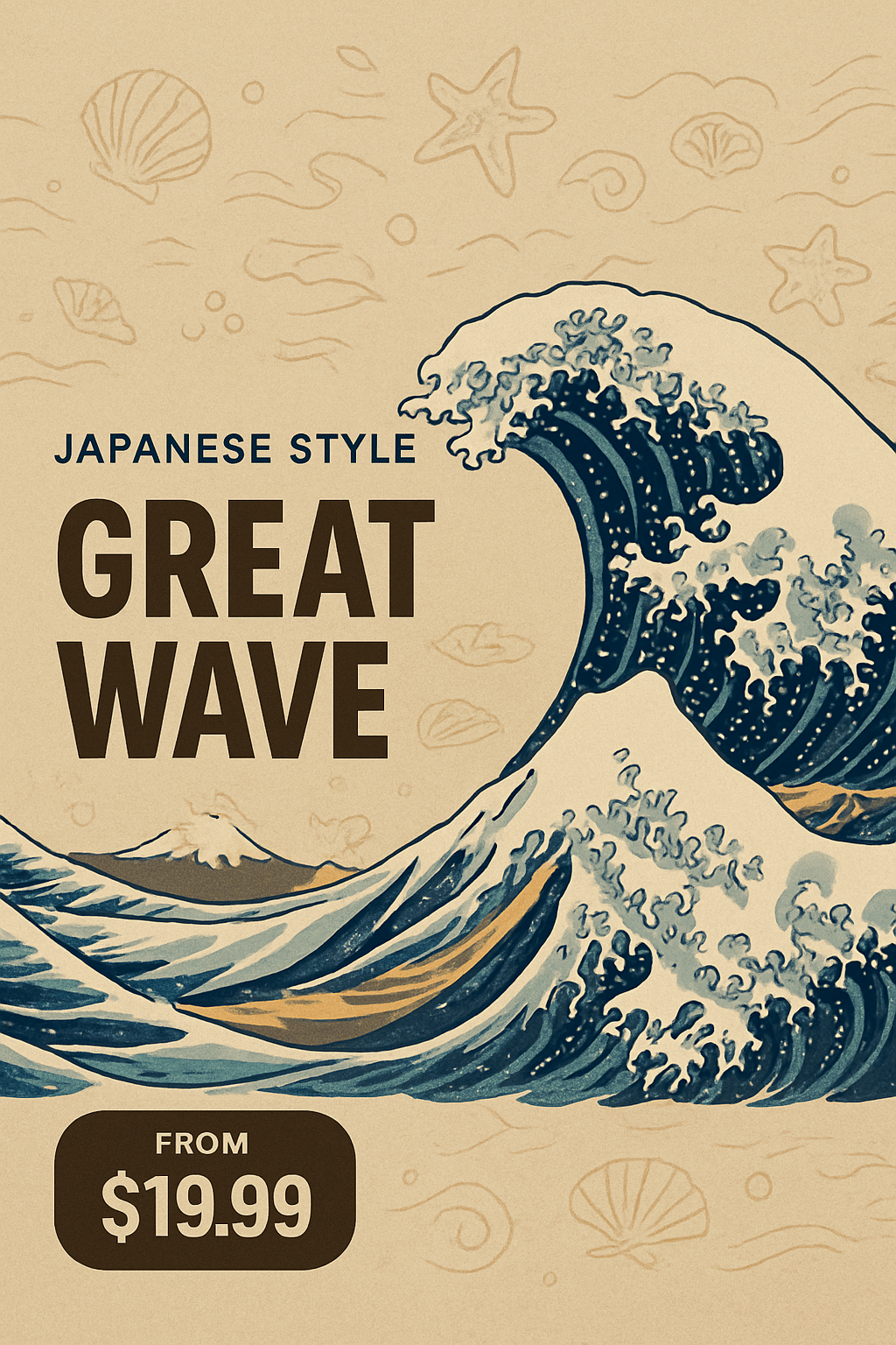 /Collection: /by davooda/Type: PNG/A striking illustration of a great wave in a Japanese style, featuring bold typography and a textured background. The design is modern and dynamic, showcasing a clean layout.