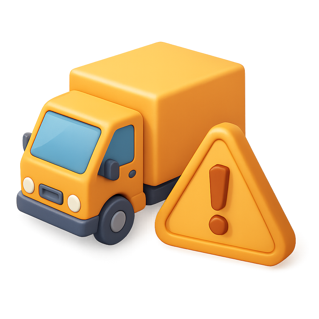 3D Delivery Truck Icon with Warning Sign