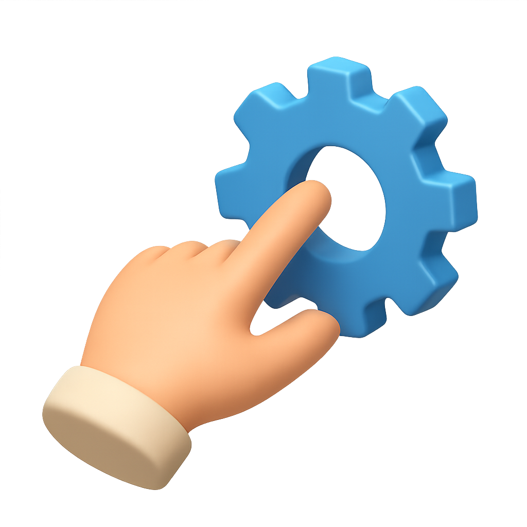 3D Icon of Hand Touching a Gear in Isometric View