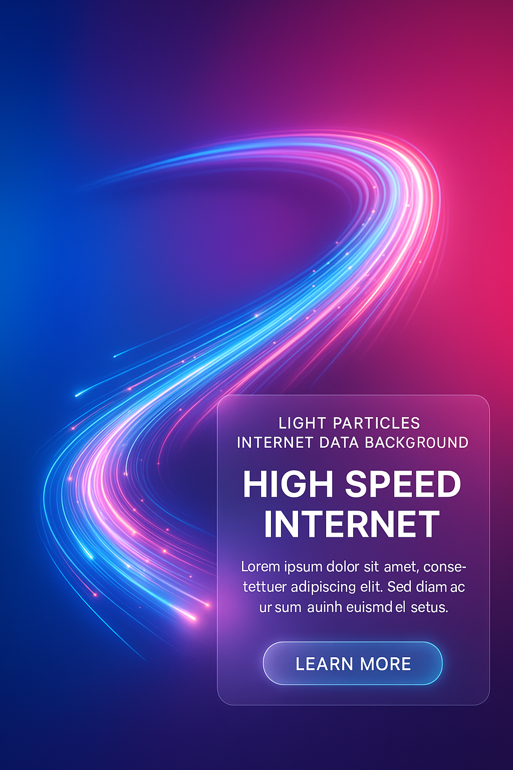 /Collection: , /by davooda/Type: PNG/A vibrant, futuristic digital highway illustration featuring light particles flowing in a dynamic curve. The design includes modern glass panels with text and a glowing call-to-action button.