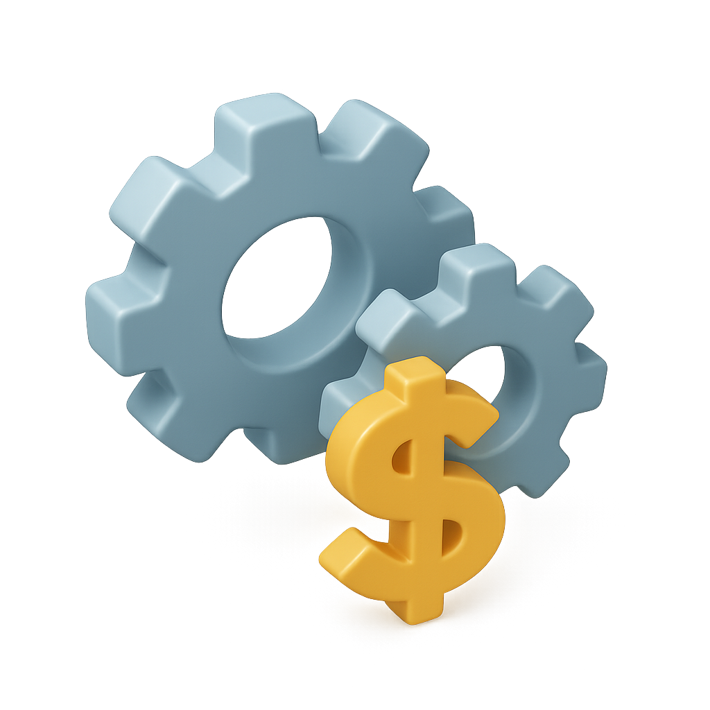 3D Gears with Dollar Sign Icon in Isometric View