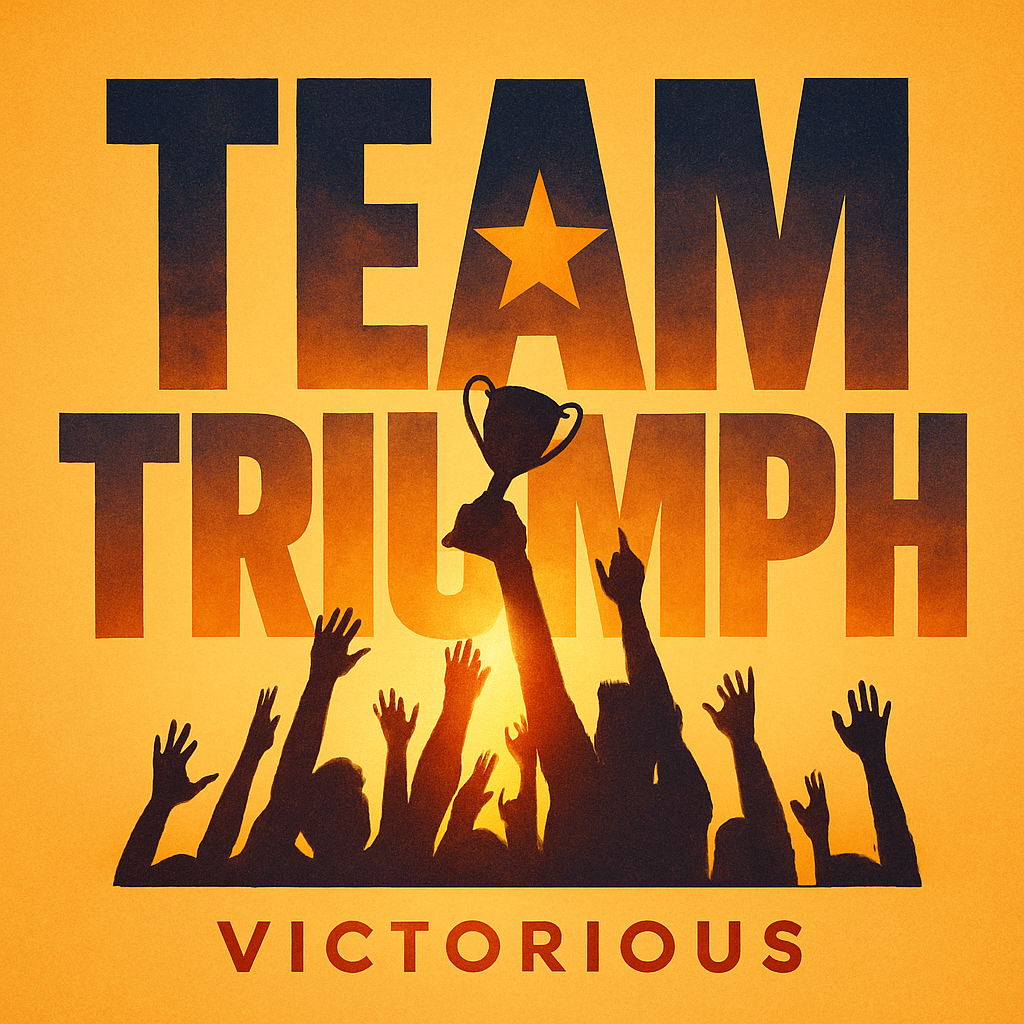 Celebratory Graphic Featuring Victory and Teamwork Theme