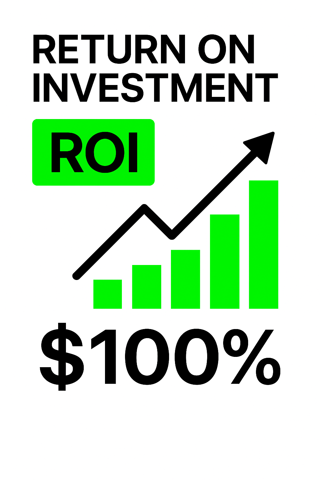 Dynamic infographic illustrating Return on Investment with a bold upward trend graph, designed for finance and marketing audiences to convey financial success.