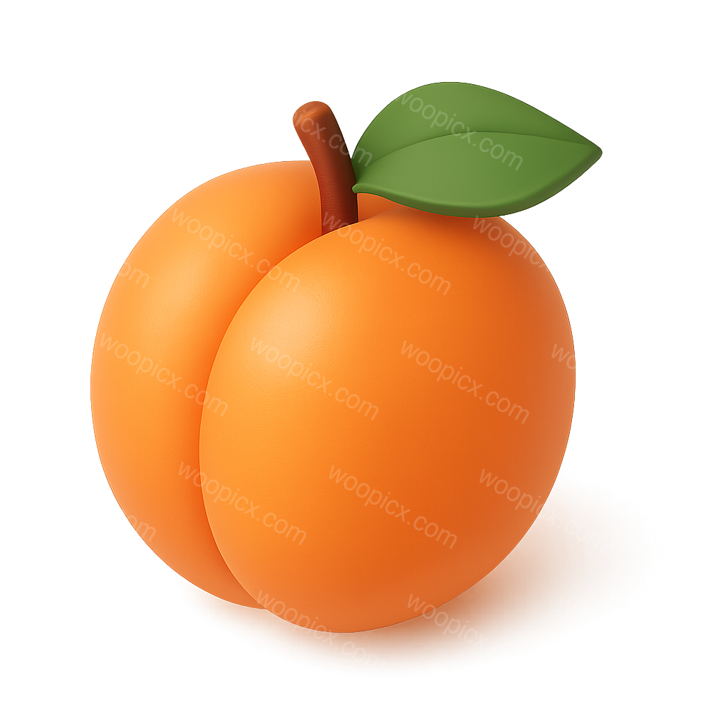 Stylized 3D Apricot Icon with Leaf and Stem