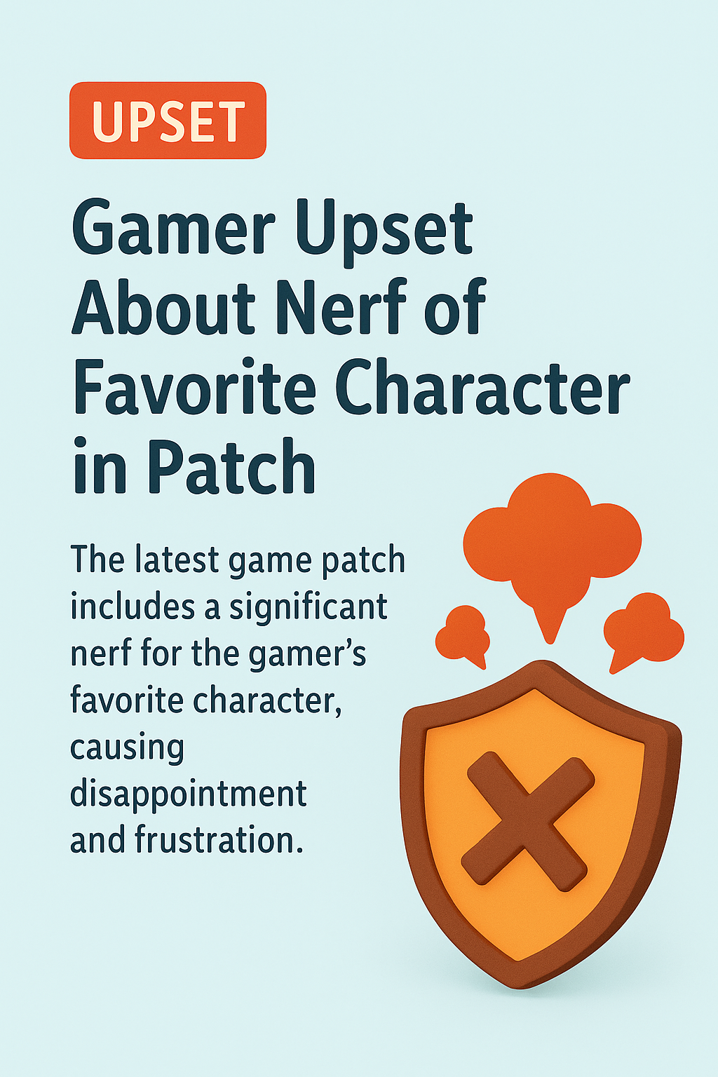 Informative social media post featuring a graphic about a significant nerf in a game patch, designed to engage the gaming community and convey user emotions.